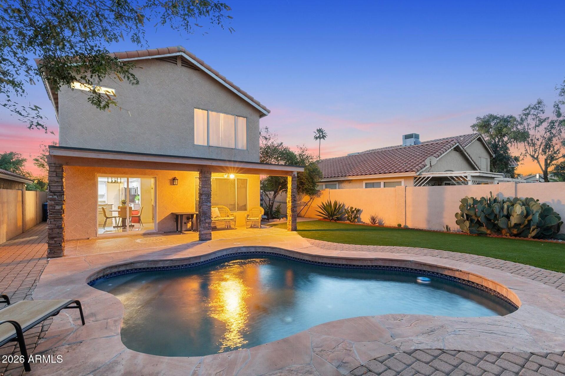 Beautiful North Phoenix home ideally situated across from a park in the sought-after Summer Lane community. This prime lot offers desirable north/south exposure and is just minutes from the newly revitalized PV Mall area, featuring an exciting mix of trendy shopping, dining, and entertainment. Convenient access to the Loop 51 freeway makes commuting a breeze.This well-maintained home features 3 bedrooms, 2.5 bathrooms, and a spacious, versatile floorplan with a second living area and an upstairs loft--perfect for a home office, media room, or play space. Major updates include a new roof (2026), AC system (2022), and pool pump (2024), offering peace of mind for years to come.Step inside to soaring vaulted ceilings and an abundance of natural light, creating an open and inviting atmosphere. The updated kitchen boasts newer appliances, granite countertops, and overlooks the backyard, ideal for both everyday living and entertaining.Enjoy your own private outdoor retreat with a sparkling PebbleTec pool, covered patio, low-maintenance artificial turf, and built-in grill, perfect for Arizona living year-round.