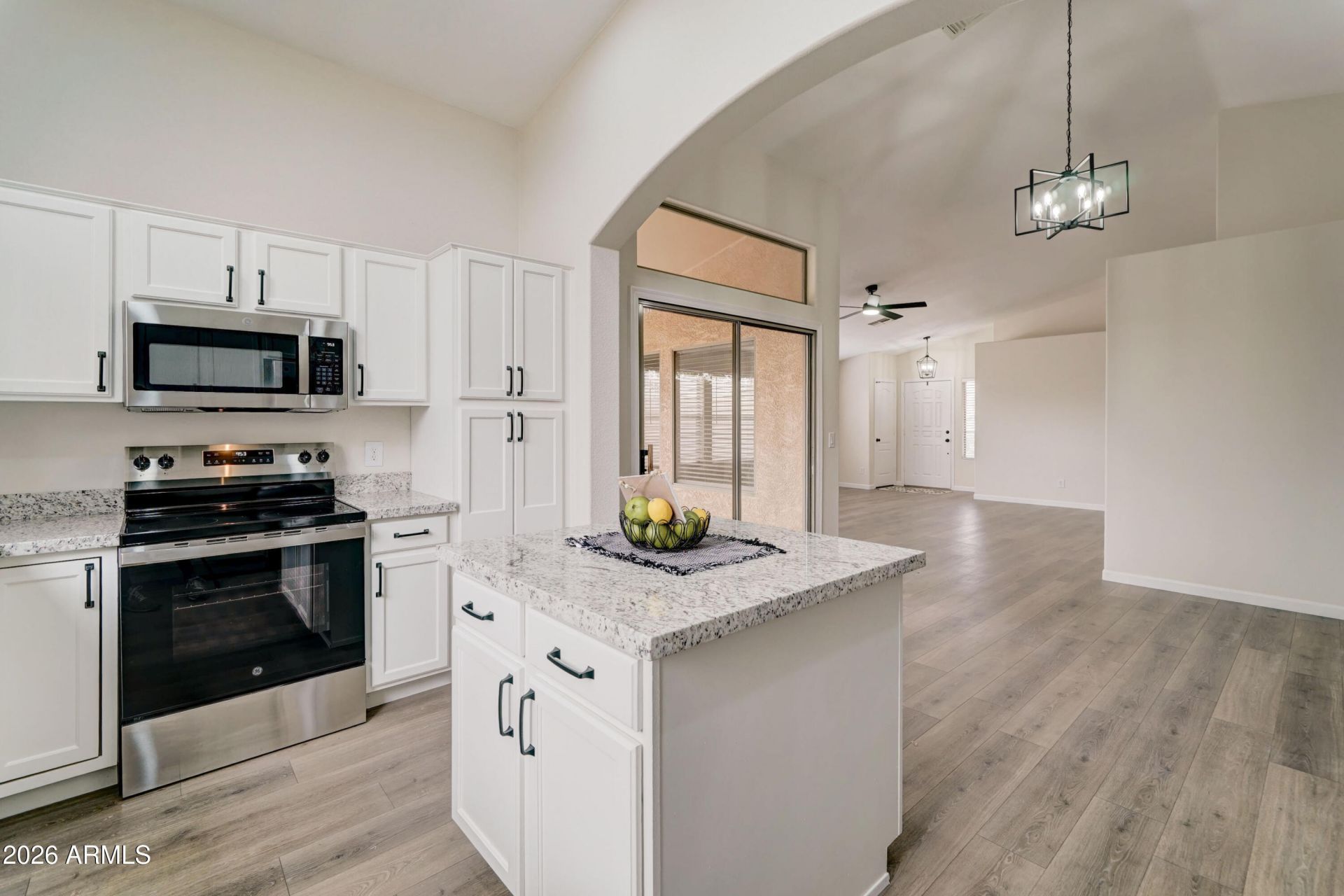 Welcome to this stunning 1,595 sq.ft. home featuring 3 bedrooms and 2 bathrooms, offering a spacious and inviting floor plan. New LVP plank flooring in all the main areas with upgraded carpeting in all bedrooms. Designer paint colors and a beautiful Accent wall in the dining area. Soaring vaulted ceiling and loads of natural light. New Faux 2 blinds. Spacious kitchen with new granite counters, and SS Appliances. Private Backyard with mature trees and extended patio for your entertaining. Just minutes from Saguaro Lake-Tonto Natl Forest, Salt River tubing, fishing and hiking trails. Dont pass by this one