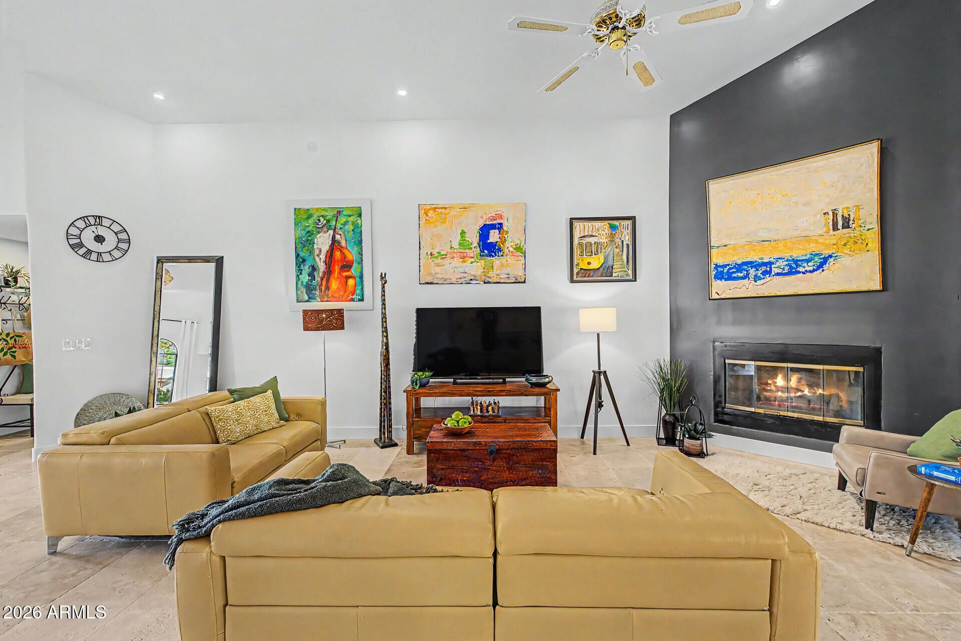 Prestigious Ahwatukee Custom Estates remodel boasts a 3-car garage, an extended driveway, RV gate, and a lovely oversized lot w/desert landscape,the spacious portico that sets an inviting atmosphere. Fall in love w/ the captivating interior, showcasing a living room with a charming bay window and a formal dining room for hosting unforgettable dinner gatherings. Youll also find an exquisite great room with soaring vaulted ceilings, a soothing palette, stone-tile flooring, and a cozy fireplace for relaxing moments with loved ones. The stunning remodel of this chefs kitchen features a breakfast nook, quartz counters with a matching backsplash, crisp white cabinetry, essential built-in appliances, and a center island with a breakfast bar for casual dining. The primary is gorgeous! MORE.. The luxurious primary bedroom boasts rustic wood flooring, convenient backyard access, a lavish ensuite with dual sinks, a soaking tub, a raindrop shower for ultimate relaxation, and a walk-in closet. Unwind on the rooftop deck, which offers breathtaking mountain views for a picturesque backdrop. The enchanting backyard includes a sizeable covered patio, flagstone pavers, and abundant space for outdoor relaxation. Dont miss out on this incredible gem!