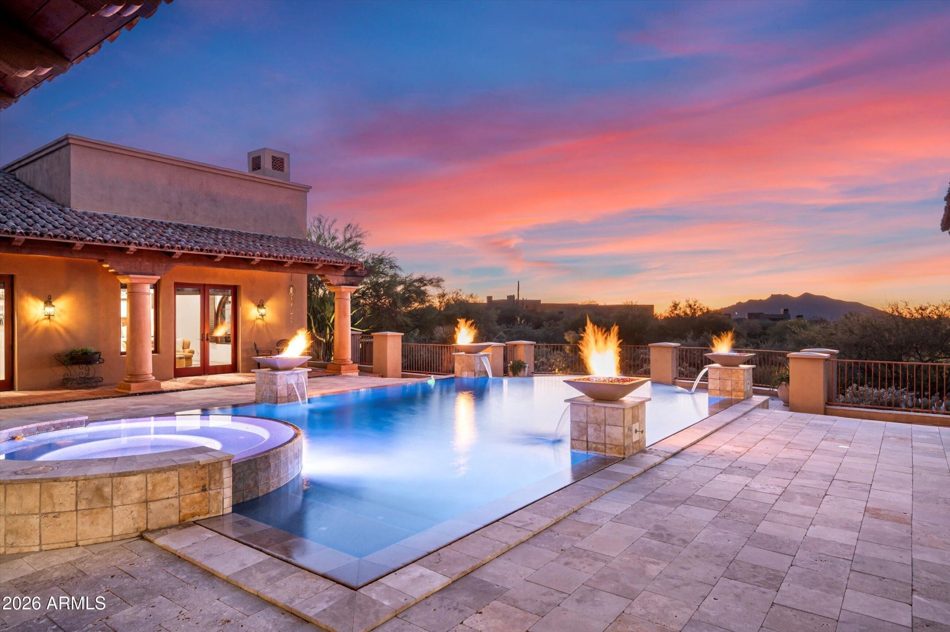 Golf membership available at Desert Mountain. Two lots combined for 2.32 acres provide a refined luxury retreat where elegance, privacy, and natural beauty converge against the breathtaking backdrop of Black Mountain, the high Sonoran Desert, and beautiful sunsets. This home was designed to honor its setting, featuring light-filled interiors, generous proportions, and seamless indoor-outdoor living. Walls of glass frame panoramic vistas and bathe the living spaces in natural light, creating an atmosphere that is both sophisticated and serene. The thoughtfully designed floor plan offers gracious living and entertaining spaces alongside private sanctuaries for rest and relaxation. Every detail speaks to elevated living--inviting gathering areas, quiet spaces, tranquil bedrooms, guest suites, and a flow that effortlessly connects to the outdoors. Whether youre hosting intimate dinners or grand desert soirées, this home provides an ideal setting for memorable moments. The outdoor living is exceptional, with space to enjoy sunrise coffee, fireside sunset cocktails, and star-filled evenings in complete privacy. The surrounding desert landscape offers a sense of peaceful seclusion while remaining just minutes from championship golf, scenic hiking trails, fine dining, and the premier amenities of Scottsdale. This property is a luxury desert lifestyle defined by timeless beauty, quiet sophistication, and an unrivaled North Scottsdale location.