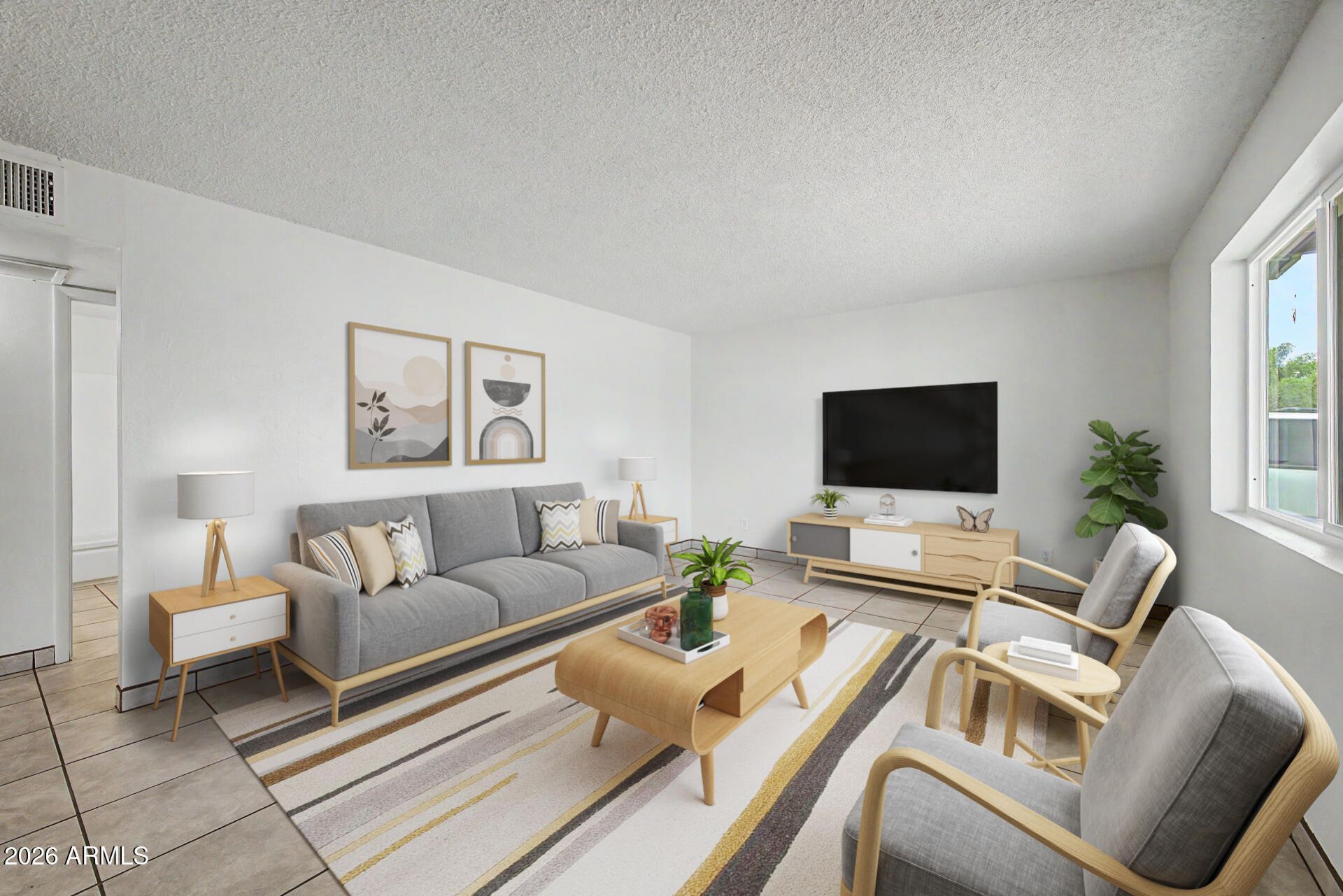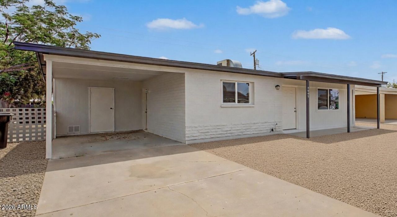 Welcome to this tastefully updated single-level home in Phoenix! A front porch & a carport space are just the beginning. The inviting interior showcases a fresh neutral palette, tons of natural light, tile flooring in common areas, and soft carpet in bedrooms. Large formal living room, ideal for receiving guests! The updated eat-in kitchen boasts a range hood, quartz counters, gray cabinetry, a pantry, and sliding doors to the back. Featuring 2 beds & 1 bath, this home is great for anyone looking to enjoy easy and low-maintenance living. Check out the spacious backyard, offering a covered patio to relax! With your creative ideas and room for a pool, you can make it a complete outdoor living space. Conveniently located close to schools, shopping, dining, parks, & freeways. Ready to move in!