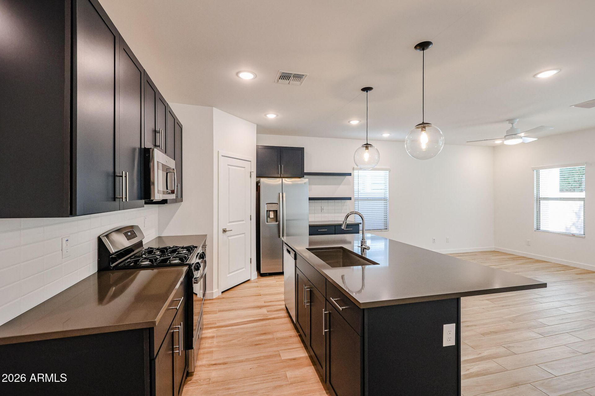 4 bedroom, 2 bath open floor plan home in gated community! This home features a split floor plan with a beautiful open kitchen including custom cabinets, granite countertops, custom lighting, gas stove top and stainless steel appliances over looking family room. Very private backyard with artificial turf, pavers and a covered patio.